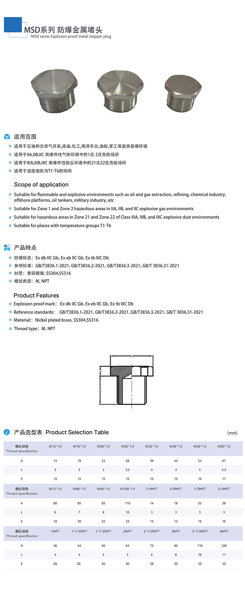 MSD系列防爆金属堵头